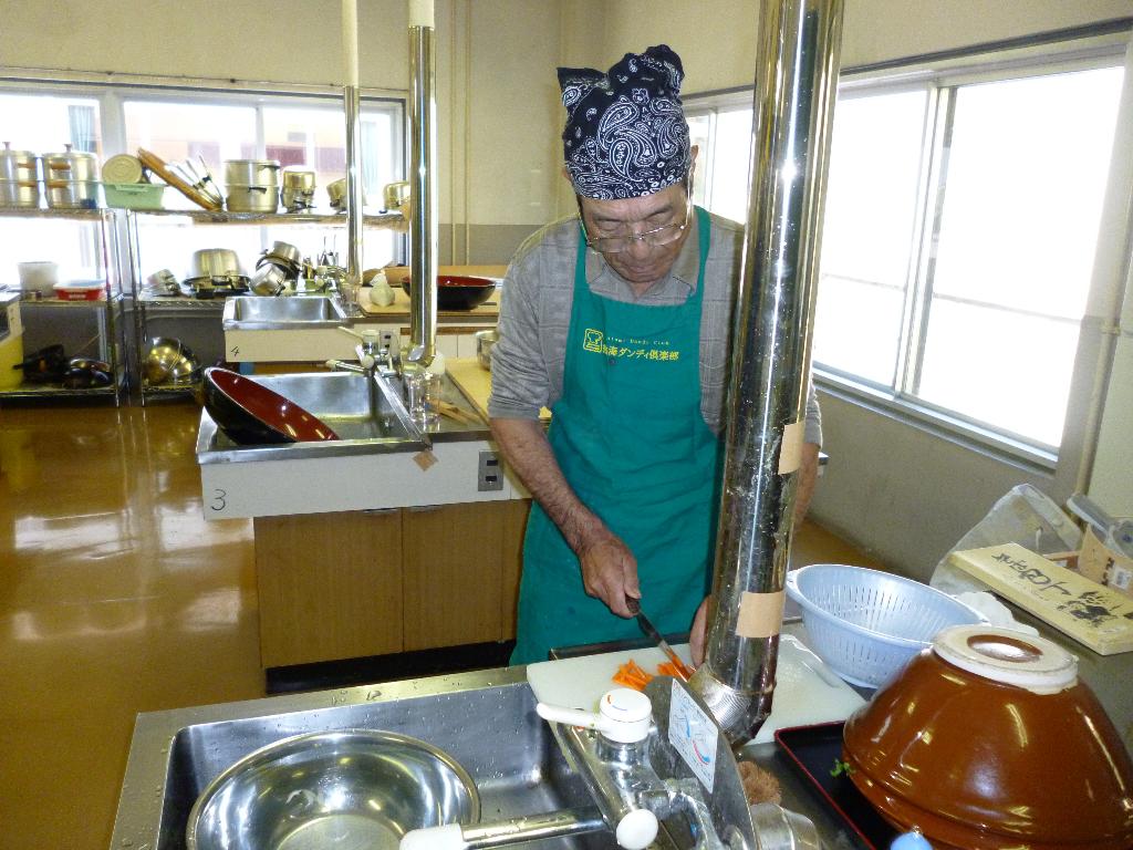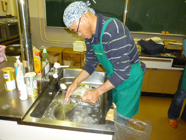 館長が調理しながら片付けもしています。綺麗好きです!posted By