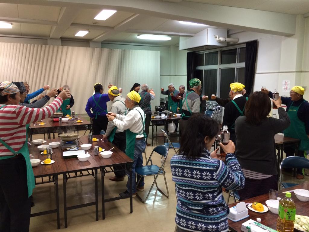 会長の挨拶で調理開始posted By