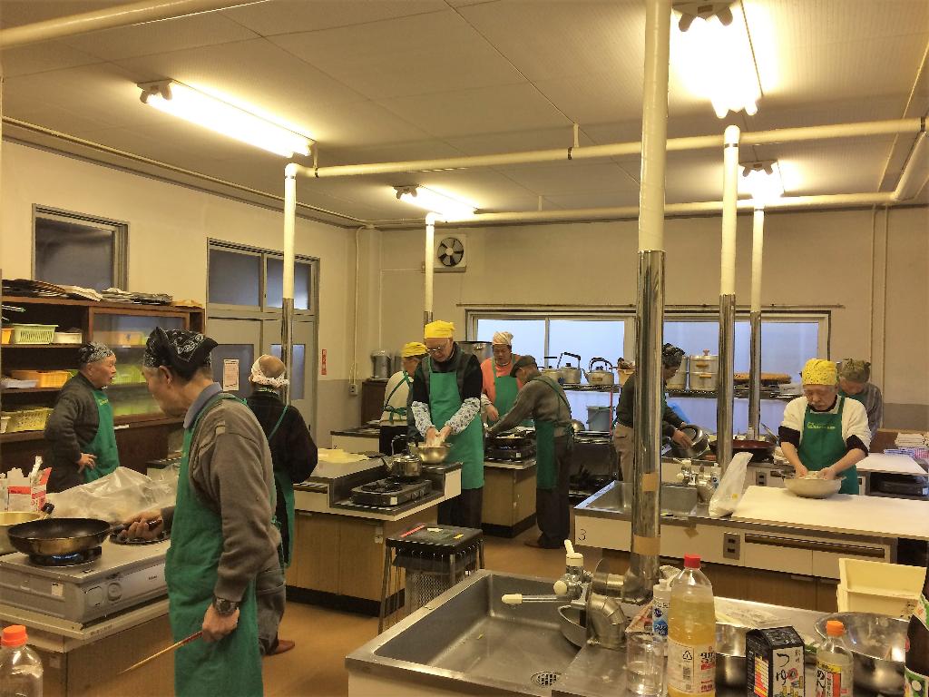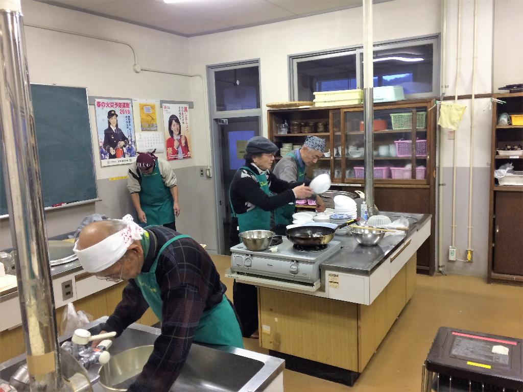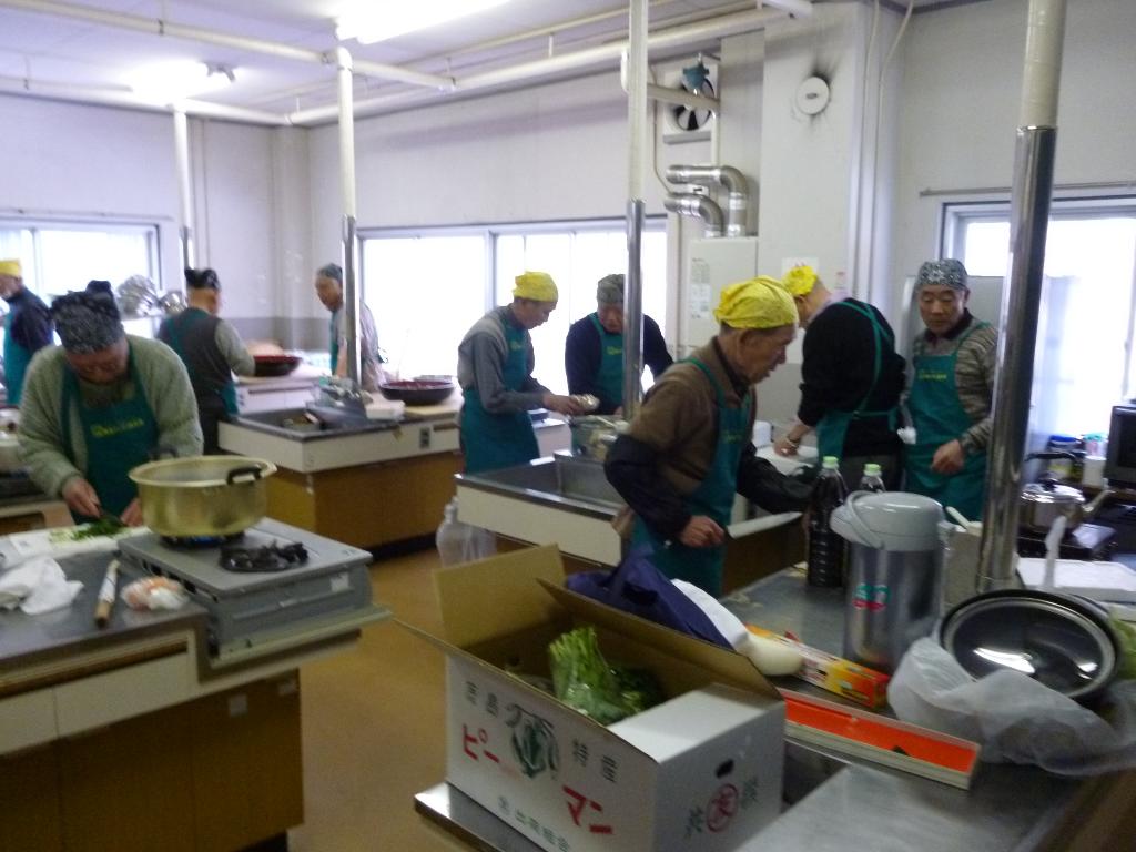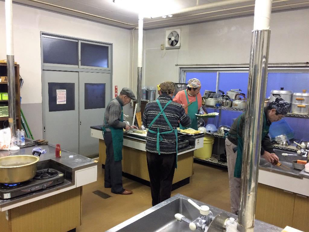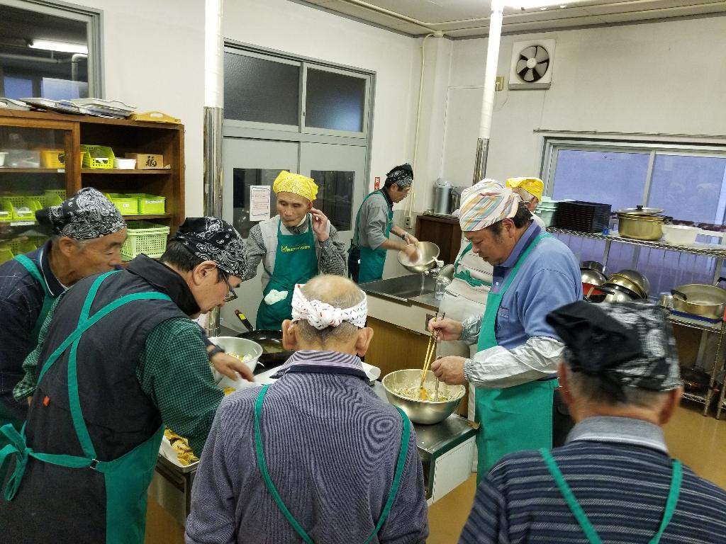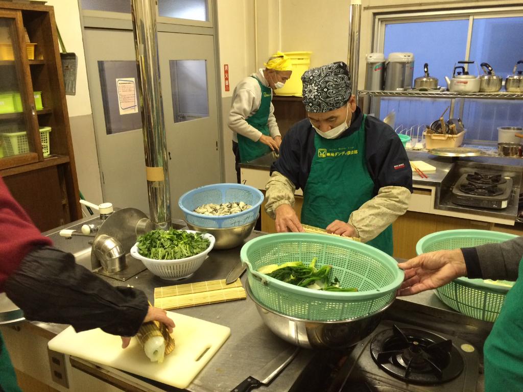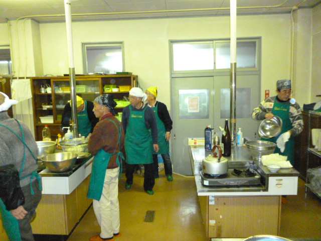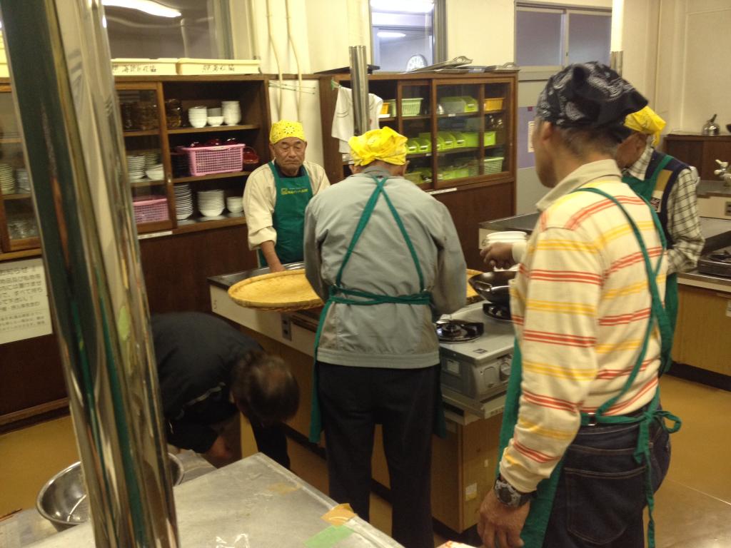 各々の分担で調理中。posted By