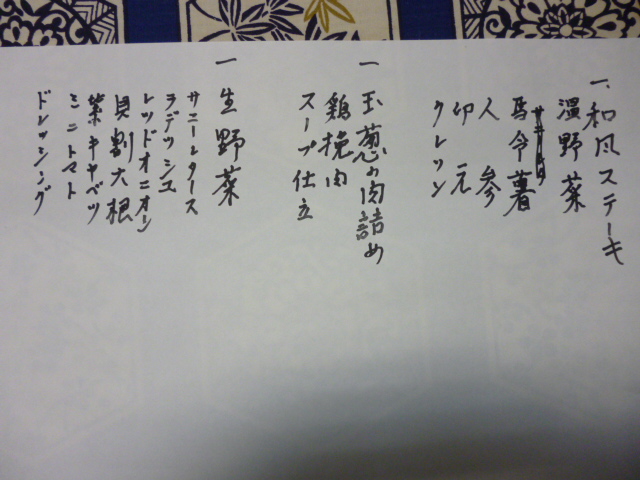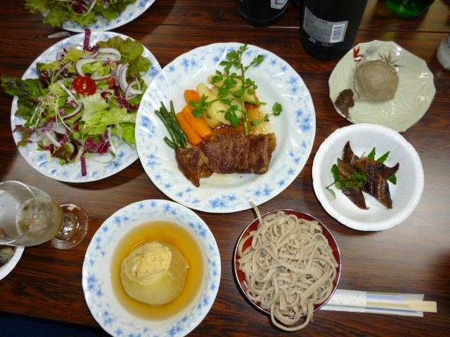 今日のメニュー。旬のカツオから牛ステーキにメインを変更しました。posted By